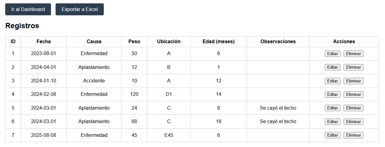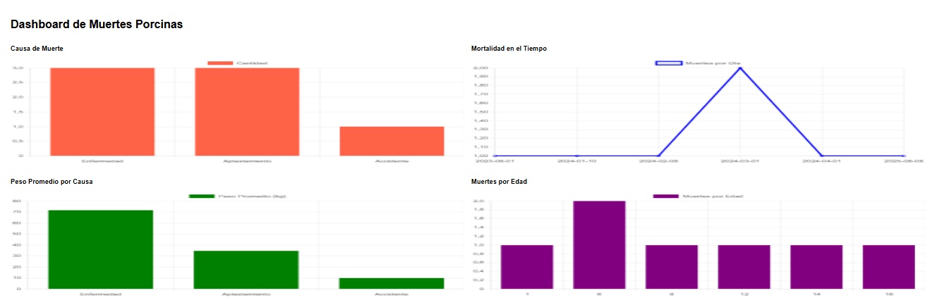 donde se ve las causas de muerte y la cantidad de porcinos que fallecieron