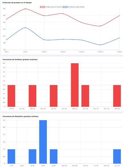 través del tiempo la evolución de la presión por separado (presión máxima y mínina).